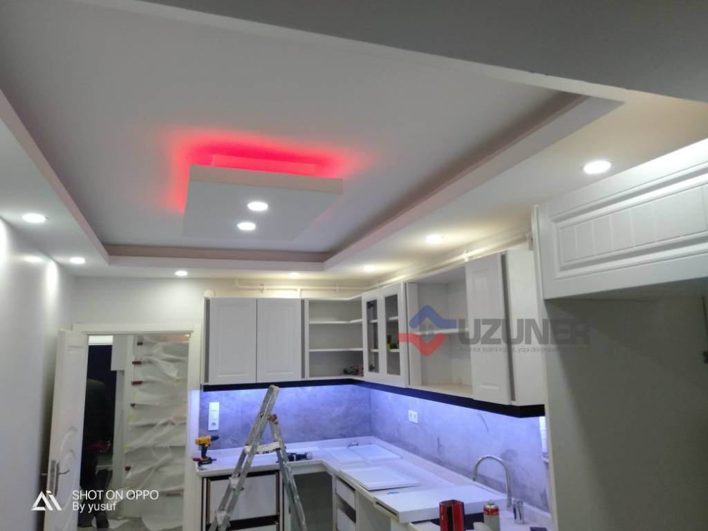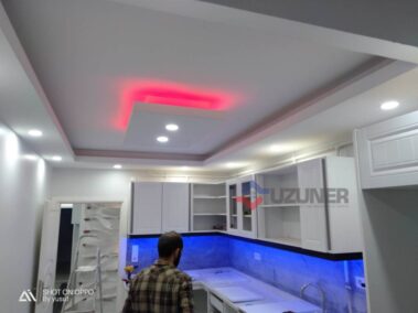 • Salon Dekorasyonu: Salonda özel tasarım niş ve TV ünitesi imalatı yaptık. Zeminleri birinci sınıf parke ile kaplarken, tavanda alçı göbek ve gizli LED ışıklandırma ile mekana derinlik kattık.